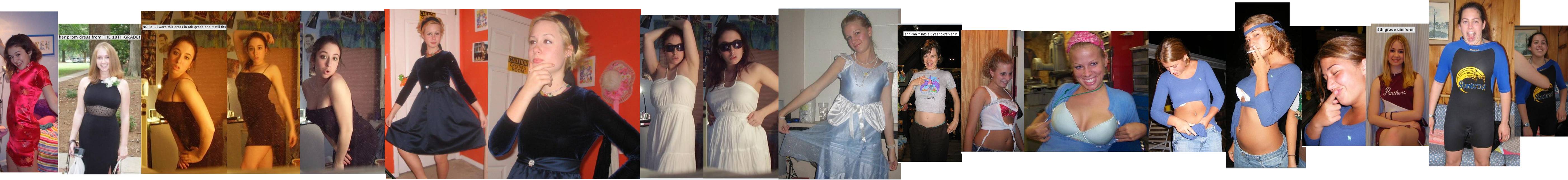 * - 124 - she proves a point. she still fits in a grade-school dress