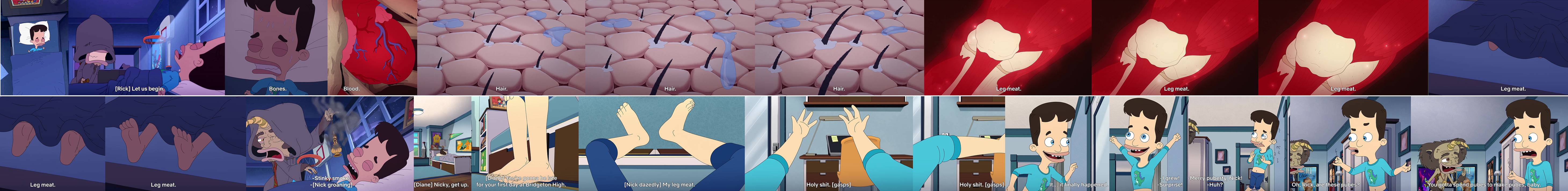 - (male overnight growth spurt, AP UC) S8, 2025. Body growth and development can be disturbing for normal people to think about. By making it annoying and irritating, the viewers are able to displace their discomfort in ways they can handle - TF scene link - screencaps