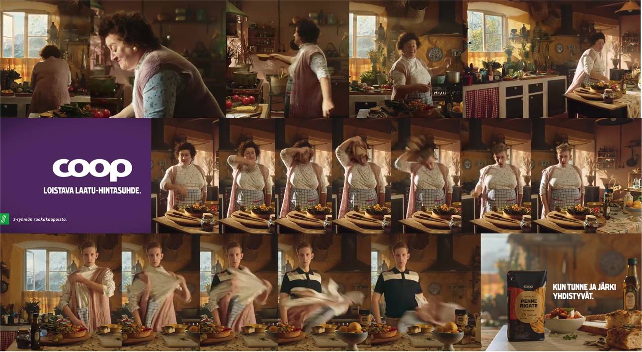 - (TG unmasking to younger man) German, Finnish, 2024 commercials.