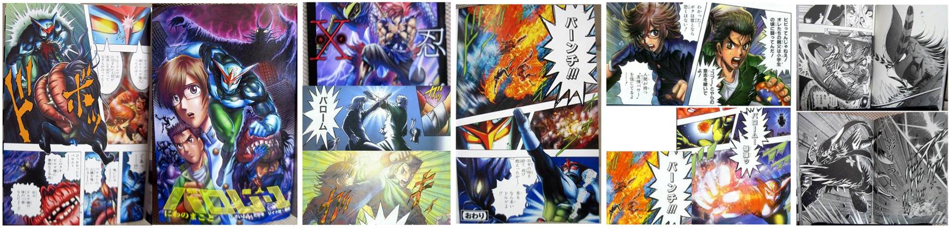Male friends Takeshi and Kentaro were born in the same hospital on the same day, shared every class in school, and even vie over the same girl. However, they become closer than they'd like when they are Chosen to defeat the evil being and his minions wreaking havoc on mankind. Together, the two merge into super fighter Barom One, capable of taking down monsters with ease. Can they band together to save the world? - Full manga link - (Higashi)
