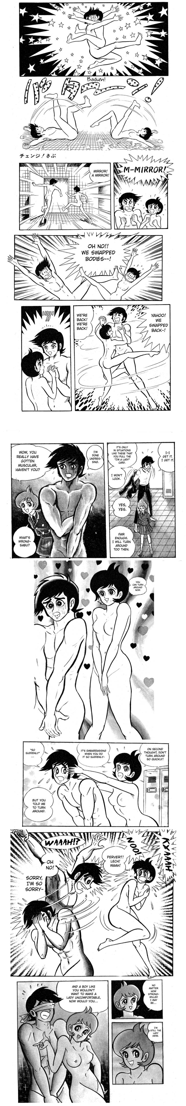 - (teen TG swaps, male muscle development evolution glimpsed) by Go Nagai, Weekly Shonen Action Futabasha, 1976.