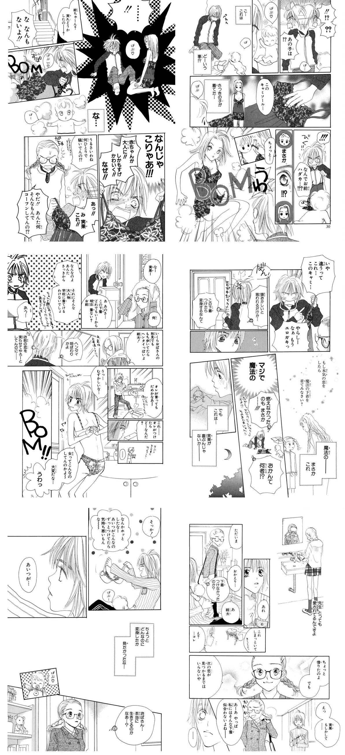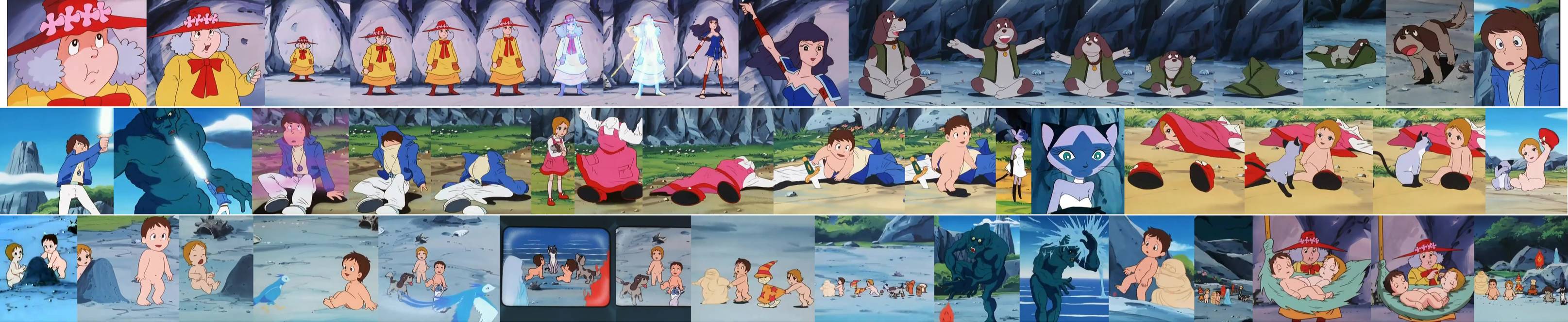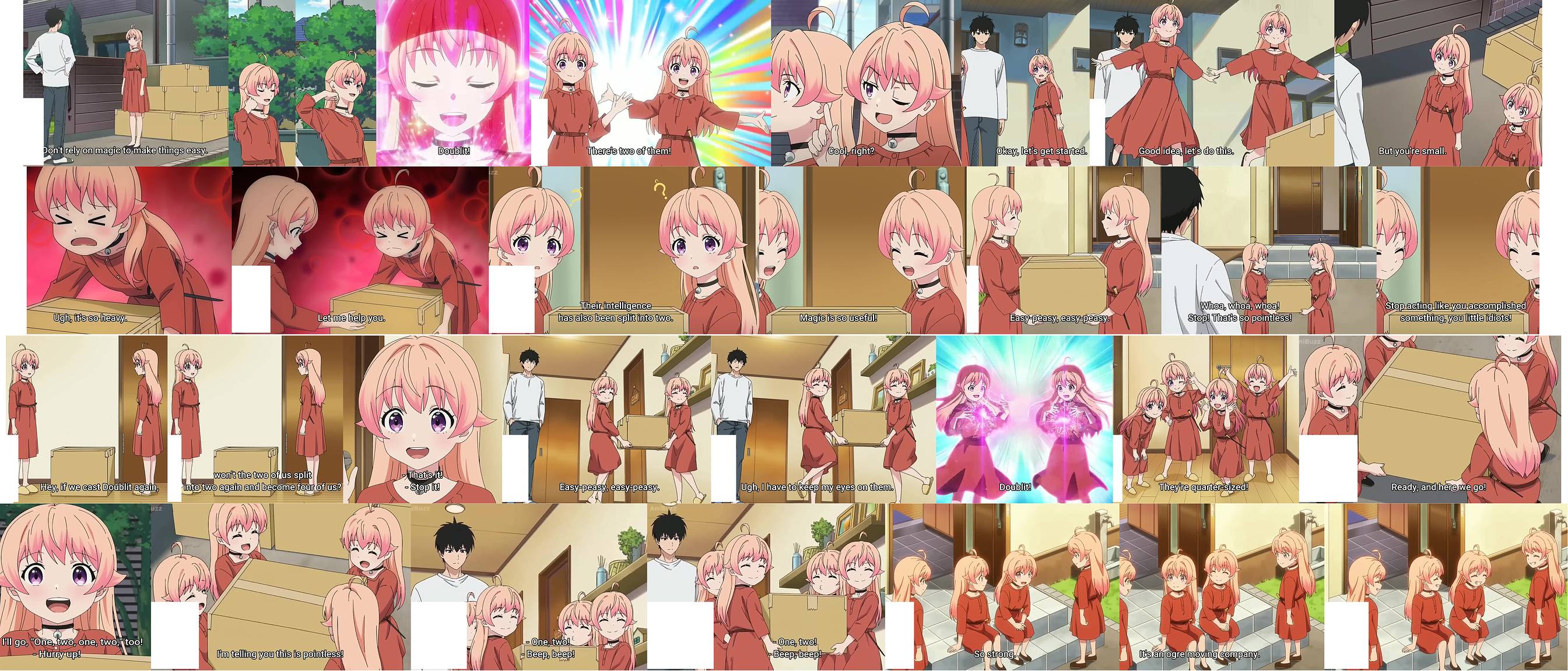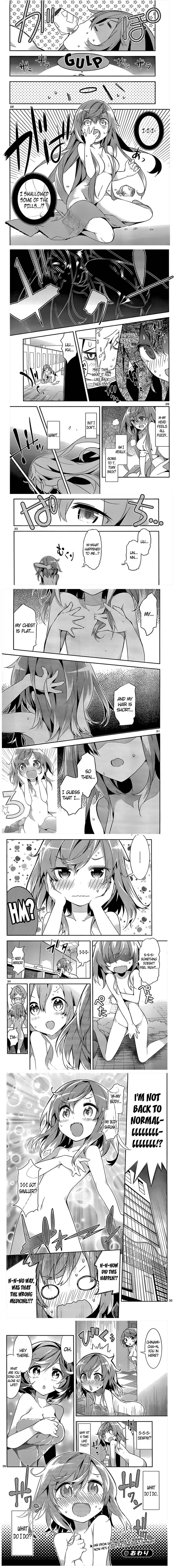 Nico's mother sends over her manga collection to be moved. Our witch Nico is lazy and uses a duplication spell to make the moving easier, thereby splitting herself into 2. However this also divides their ages in half. Then, to try to be lazier both halves split again, leaving them preschool sized! Now there are 4 child versions of herself - Scene link - caps - (Root Beer Surge)