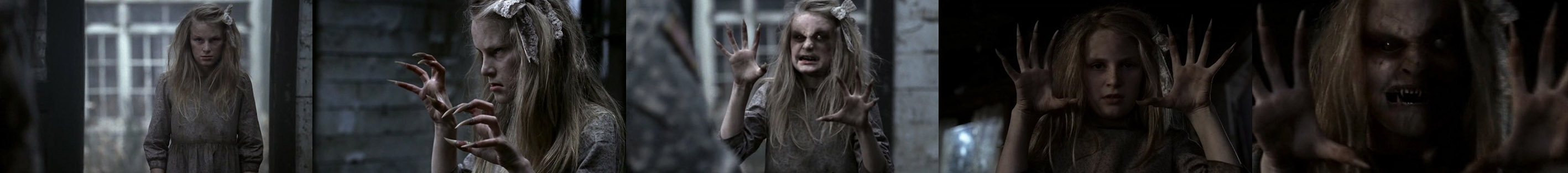 Dr. Gaines hears Annie singing creepily to herself. "Little girl, can I help you?" "Are you a Dr. Sexy?" She grabs him by the arm and twists him to his knees. "I want to be a surgeon when I grow up. And I want to grow up now!" she says. Then she morphs into his shape and eats him.