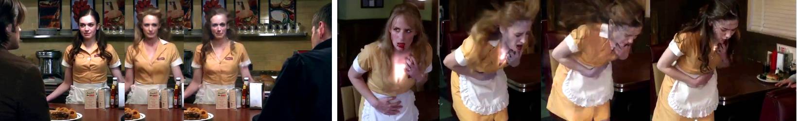Dressed as a waiter, young adult demon Eve torments the brothers by AA-transforming into their mother - Scenes link - screencaps