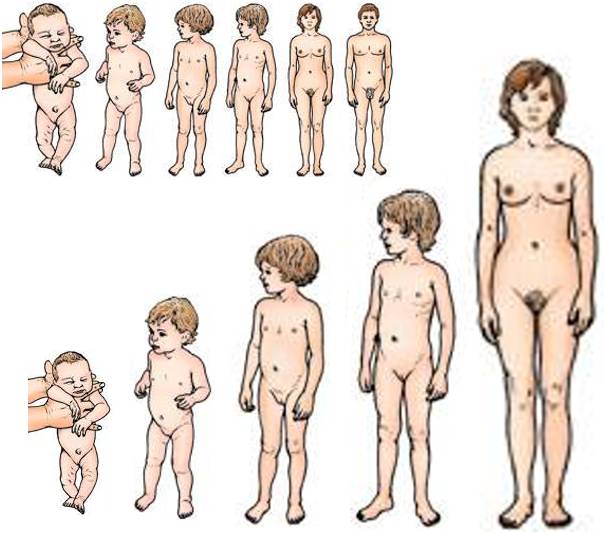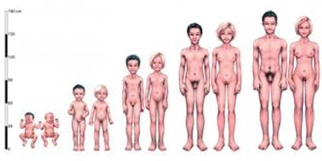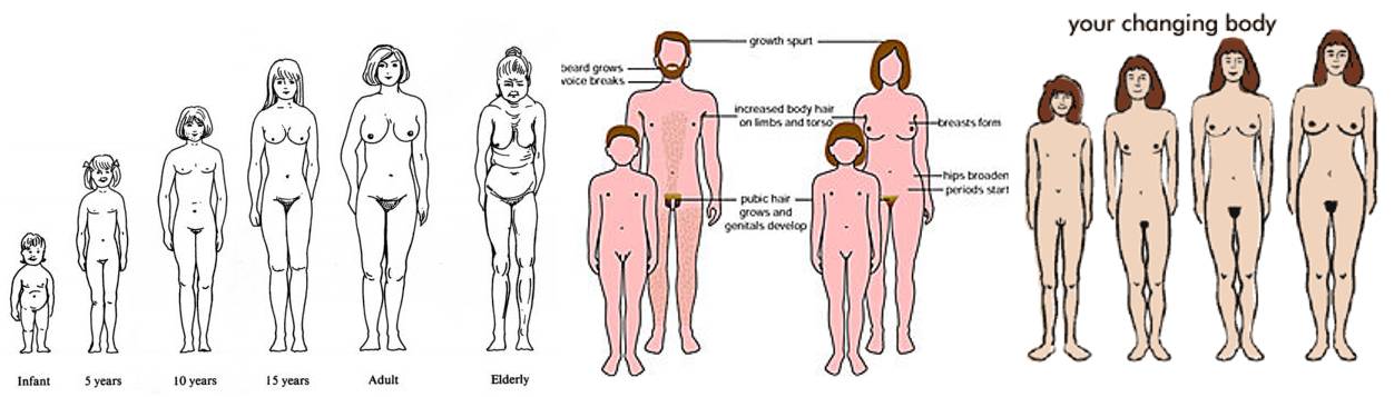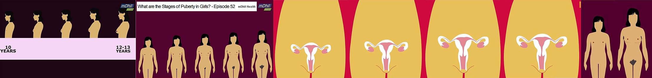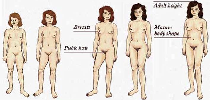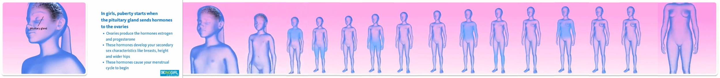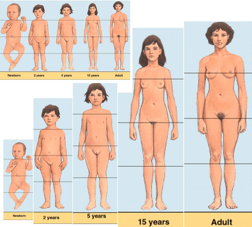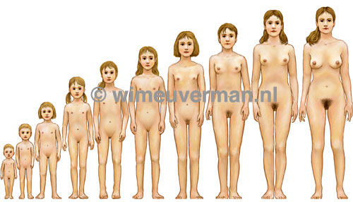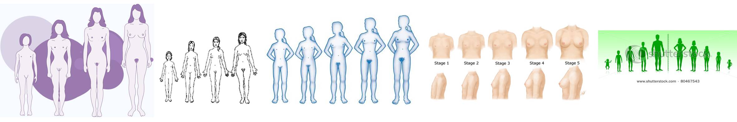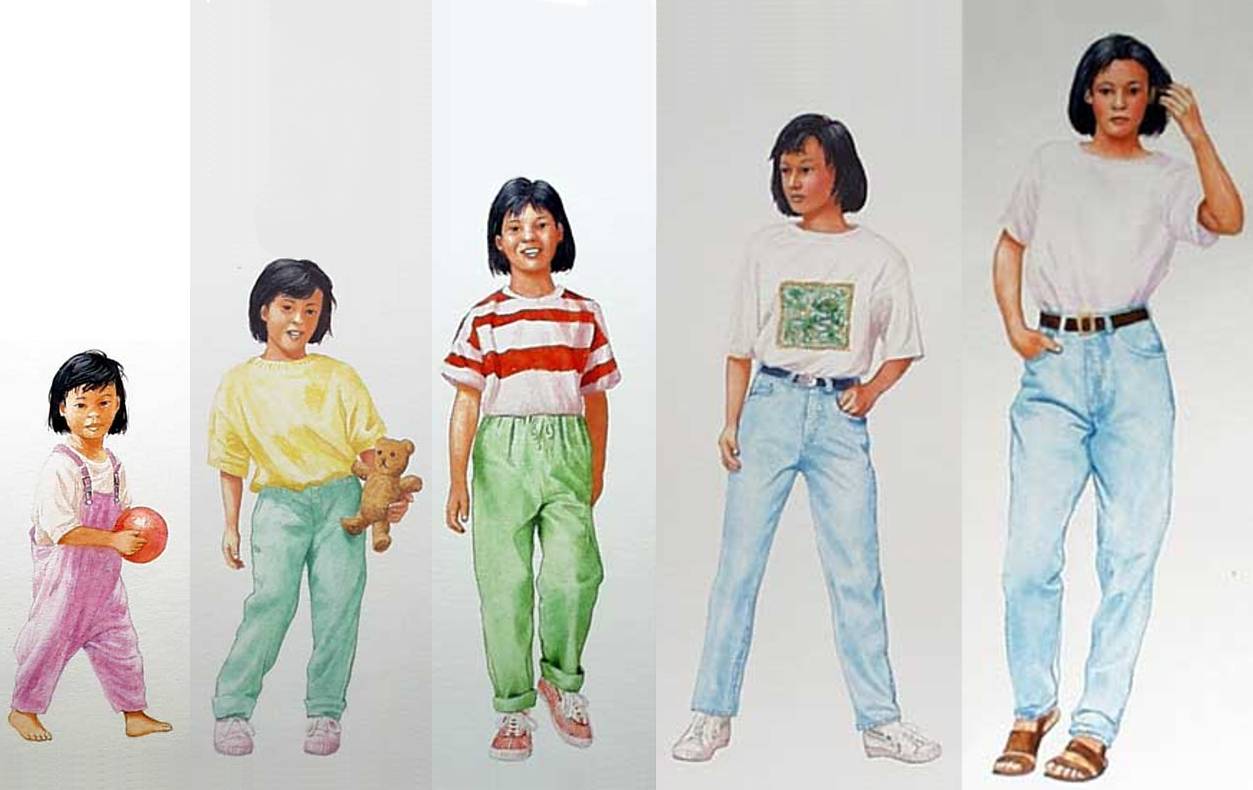 The same girl is shown at age 2, age 5, age 10, age 13, and age 20.