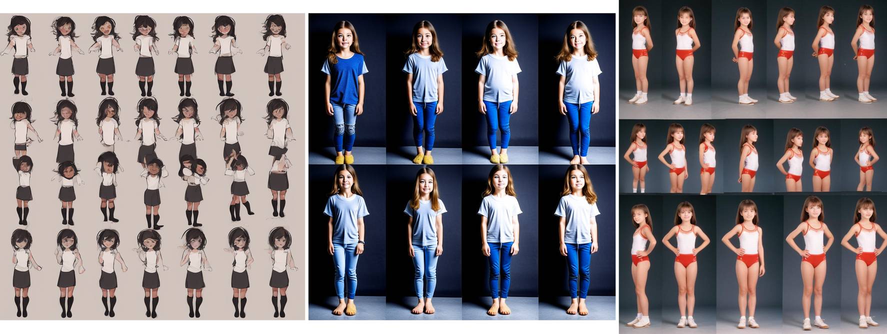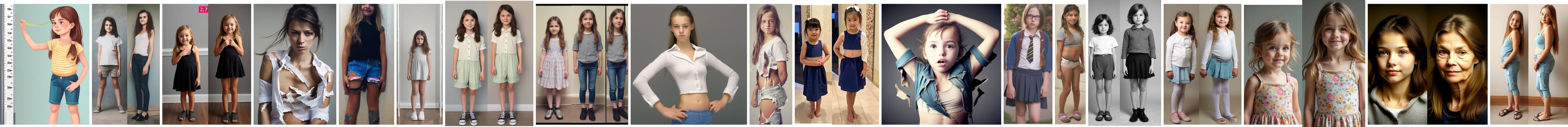 AI interpretations of girls in the process of growing bigger. Simulated same pose, age increase photos. The less size increase, the more consistent the result will tend to be.