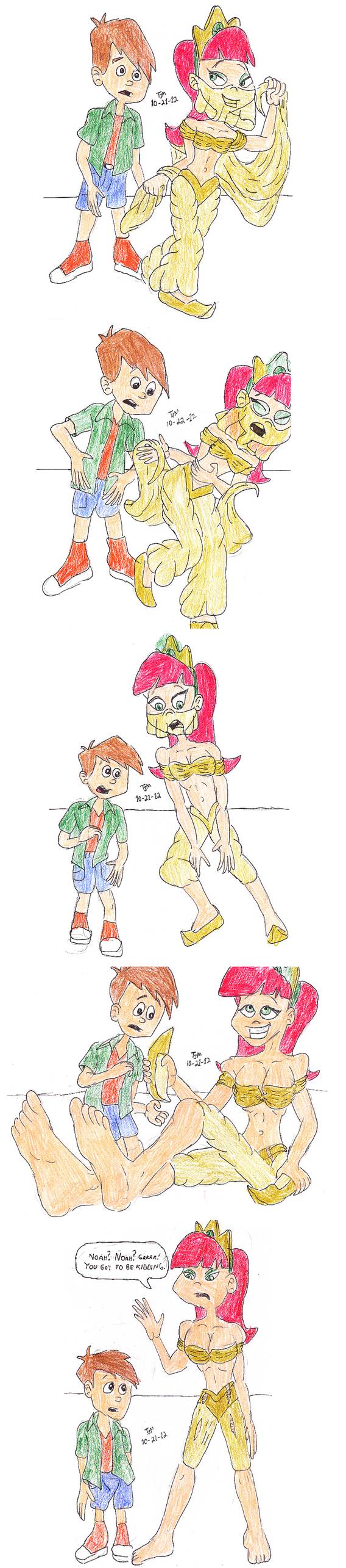 The Great Gazoo tells Fred that women need to be treated like children. At the same time, Betty and Wilma conclude that it is men who need to be treated this way. When Fred gets home, he and Wilma treat the other as a child in turn.