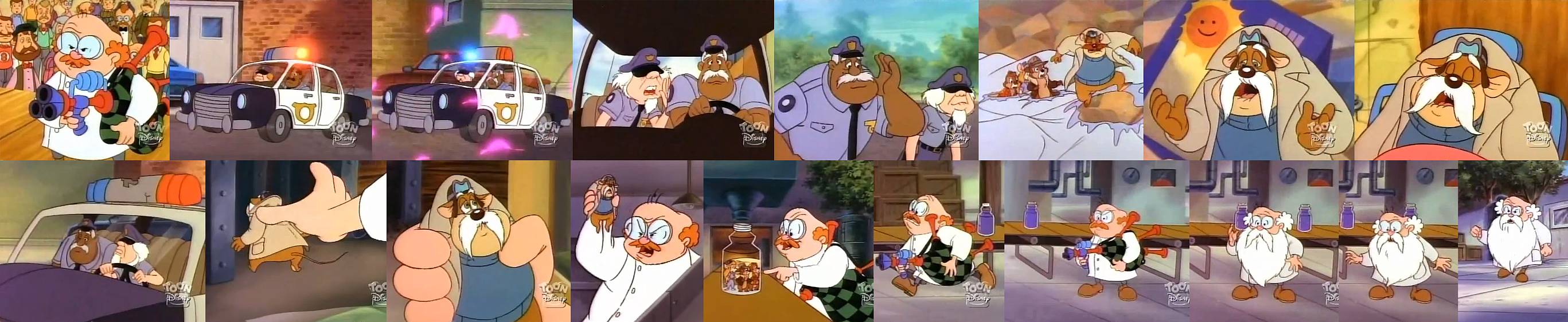 (male AR) Dr. Shrinkman turns government leaders and agents sent to arrest him into toddlers. He tries to slip Pauline the formula too, but after the old switching drinks ploy, Shrinkman gets his own formula. He turns into a 5-year-old, who is sent to nursery school instead of prison. (Ricky)