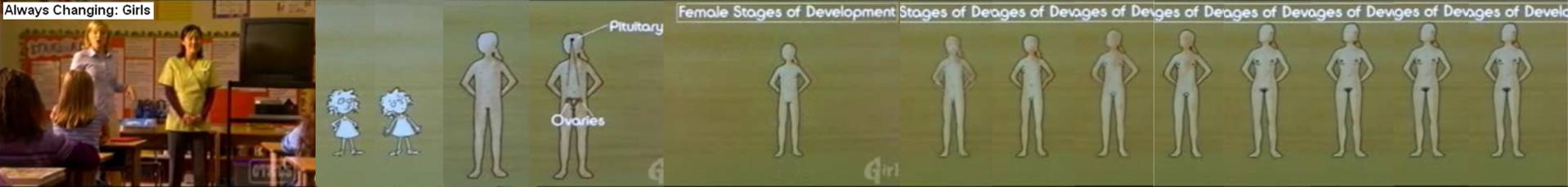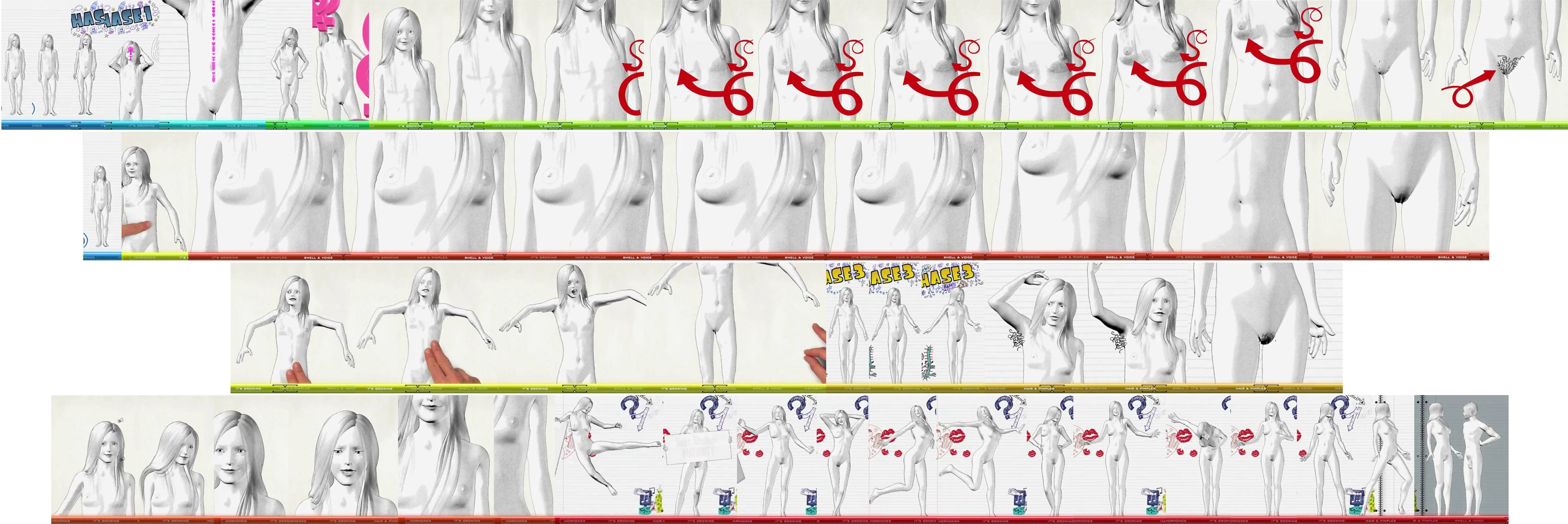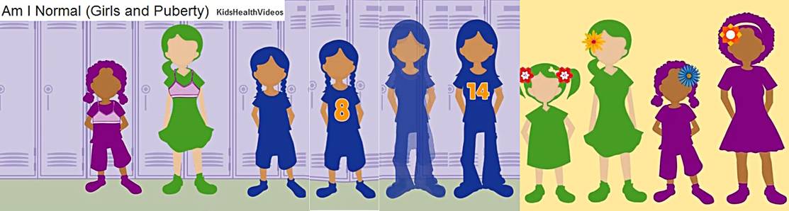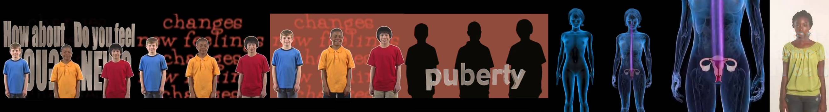 Animated puberty documentaries with comic growth animations.
