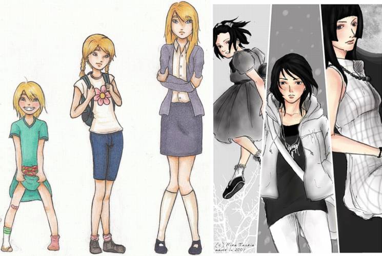 - (AA FF) West Characters Shari Rock and Tam's age progression, 2021. Web comics concept sketch link - (Lunkpil) - alt