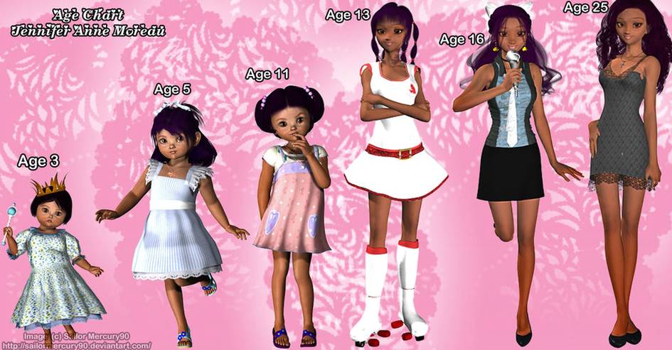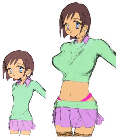 - (age changing ability) She is a Chronomorph who can change her age at will. It does open up some cool possibilities for some ecchi as well as some nice personality poses and things, her transforming (clothes not fitting for example) or her as a business woman, then teenager goth, then cute kid with a teddy, then 35 year old super hero, then perhaps a granny, or a mom, or whatever - (Scott)