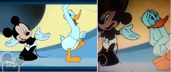 A ball hits Donald Duck and he starts acting as a child. (Mental Ar)