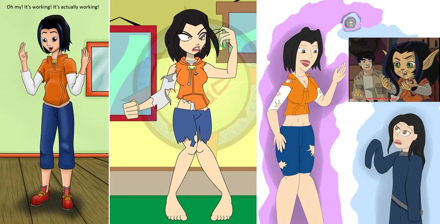 Valmont encounters Daolon Wong, and after insulting the Dark Chi Wizard, is shrunk into a 10 year old Little Valmont. Meanwhile, Jade (who wants to grow up NOW!) turns to magic for assistance. Jade steals away on the Section 13 jet as Jackie, Uncle and Tohru fly to retrieve the Horse Talisman. Jade's "growth" potion begins to work on her clothes and also (at the EXACT same rate) her body, making her proportionally larger than Tohru.