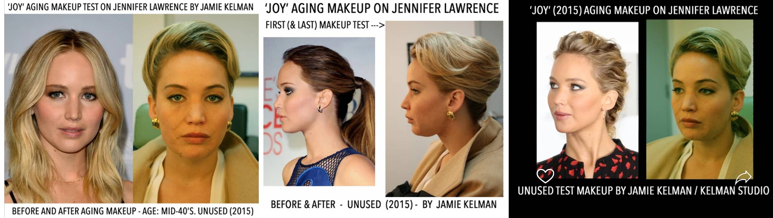 This is unused aging makeup on Jennifer Lawrence, the film is Joy (2015). Jennifer was intended to be aged for a couple scenes, but in the end it wasn't used - (Horseluis)