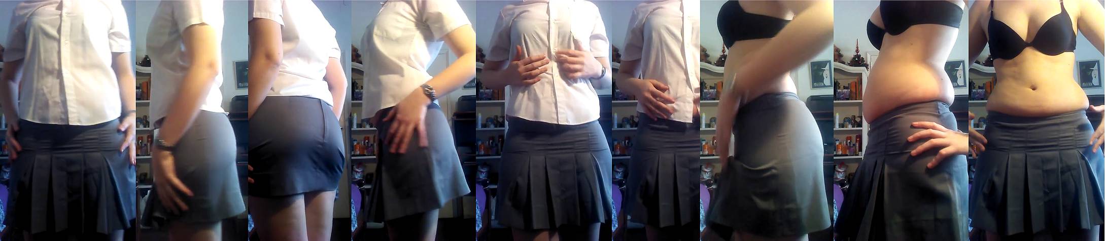 - old school shirt still fit, but skirt became too tight for her widening hips