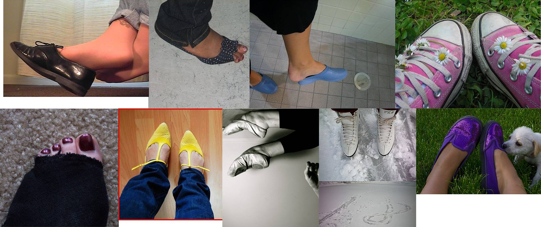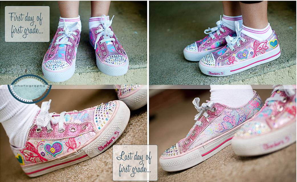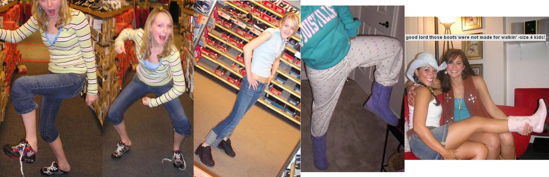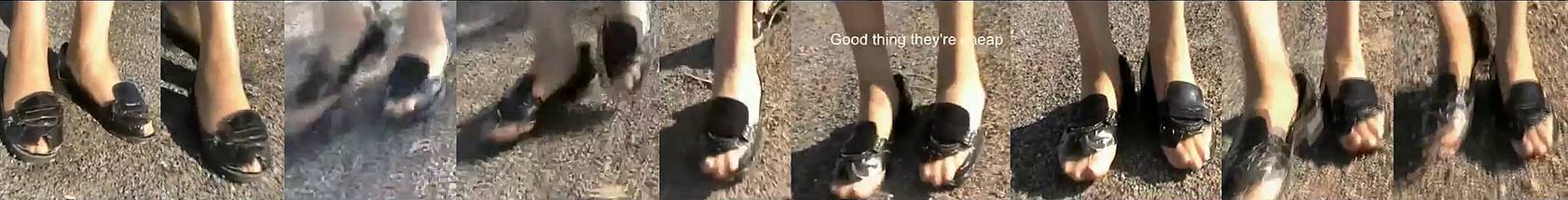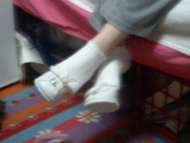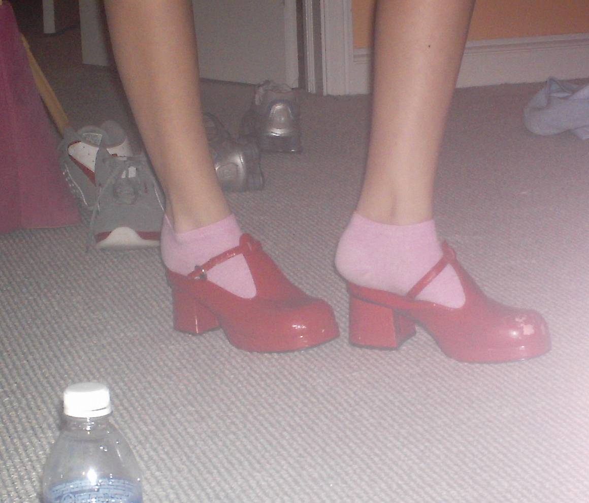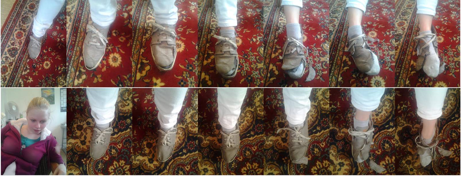 * - shoe popping - "she keeps wearing her shoes as her growing body demolishes them"