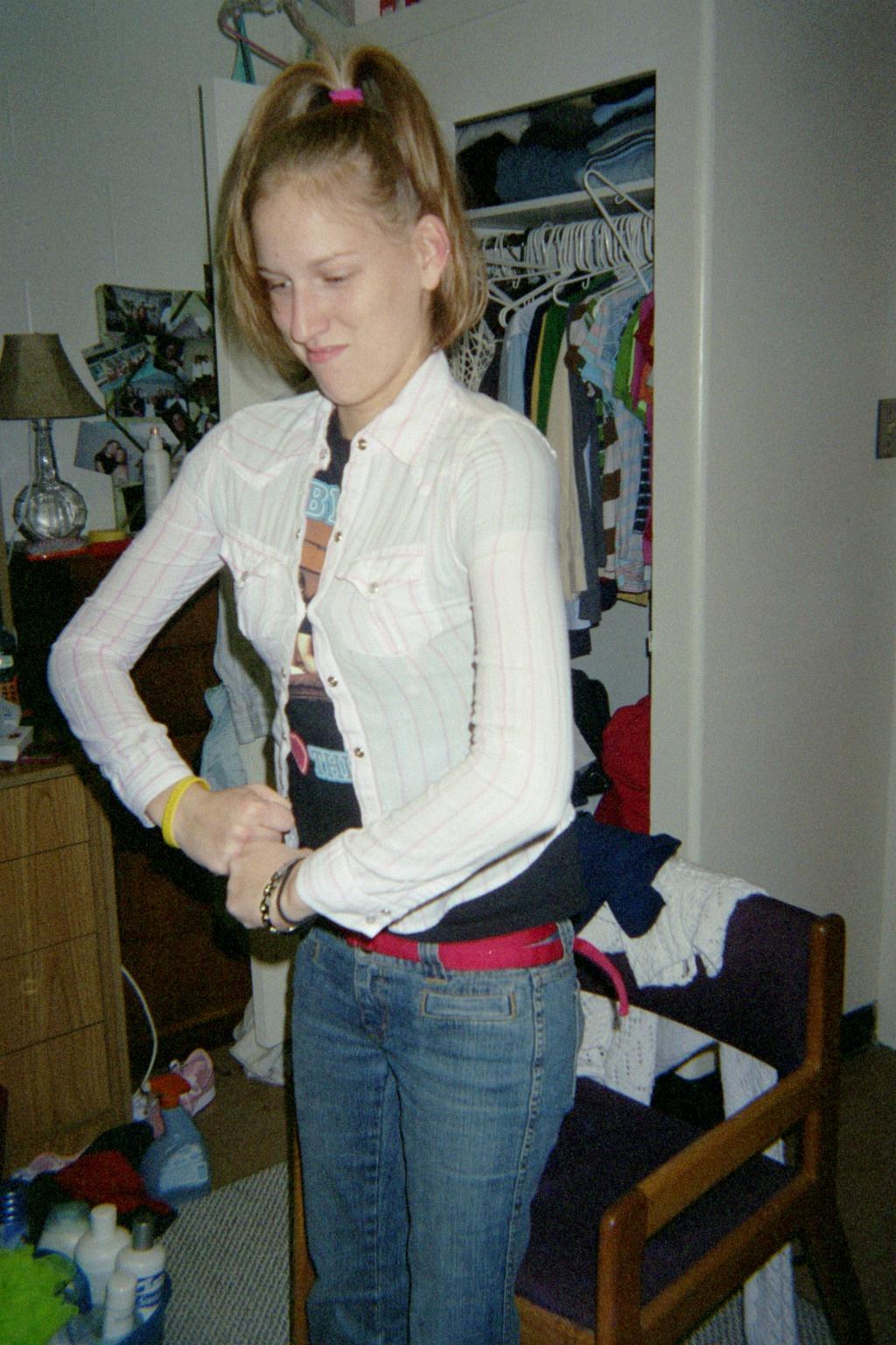 * - 132 - squeezed into my old 4th-5th grade uniform!